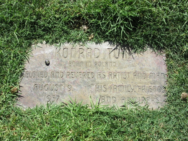 Anna Mieszkowska przytoczyła w swojej książce wspomnienia Wandy Strabowskiej-Harris: „Kuzyn, u którego mieszkał, nie mógł pokryć tak wysokich kosztów. Dzięki gwałtownej interwencji Krystyny Dubrawskiej pochowano Konrada w oddzielnym grobie, nie we wspólnym – dla biedoty. Złożyło się na ten pogrzeb dwadzieścia osób, i tyle nas było na uroczystości. Razem z nim złożyliśmy do grobu skrawek dawnej Warszawy, która tak ukochał. Żal mi było bardzo Konrada, męczył się tutaj. Nie miał właściwie ani jednej jasnej chwili…”.